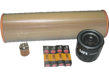 FrühjahrsstartsetsSerie 105/115, 7- teilig 1x Luftfilter (rund), 1x Ölfilter (Patrone), 4x NGK-4-Elektroden Zündkerze